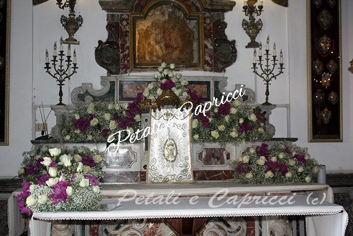 Altare per matrimonio con nebbiolina e bouchenville di Taormina